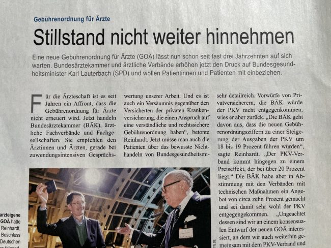 Dieser Blog behandelt ausnahmsweise und aus aktuellem Anlass (03/2023) die Kampagne der Bundesärztekammer: „Zeitgemäße Behandlung – überalterte Gebührenordnung“.